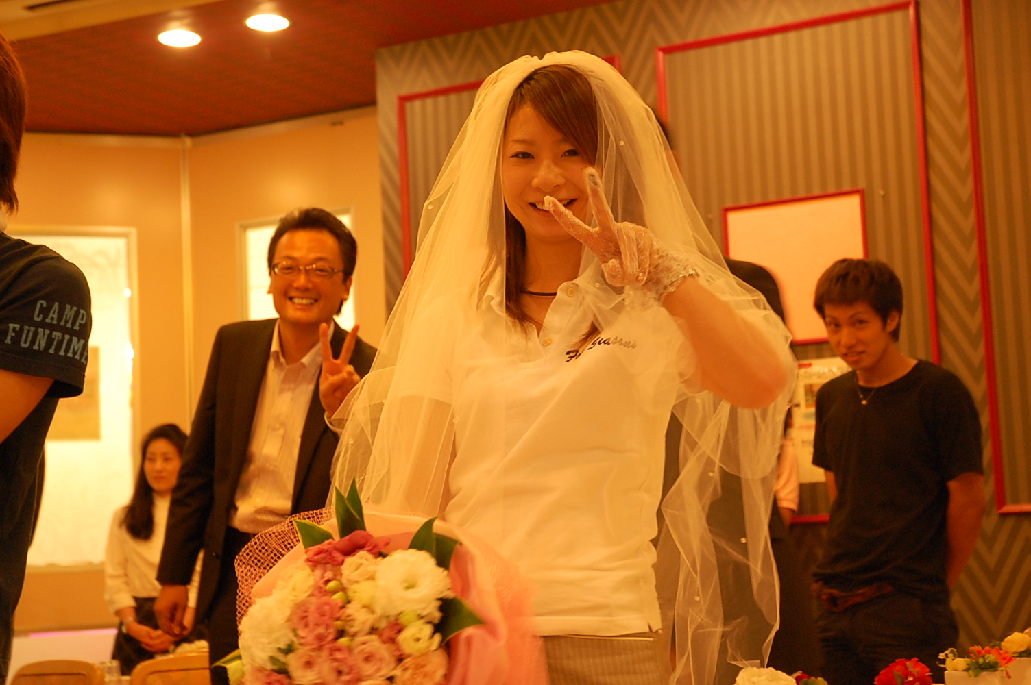 普段の打上だと・・・何も知らない彼女にベールをセットして!